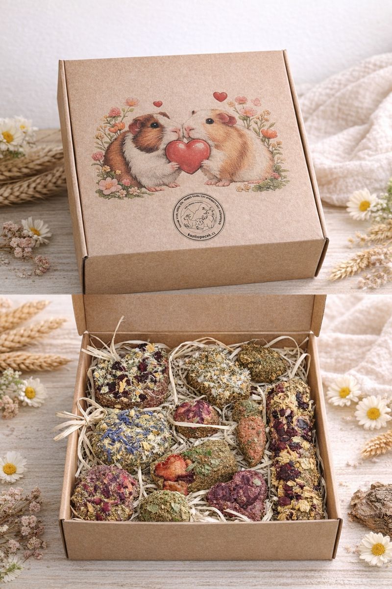 Náš luxusní valentýnský box pro morčata je vytvořen s maximální pečlivostí – od výběru surovin až po ruční zpracování každého pamlsku