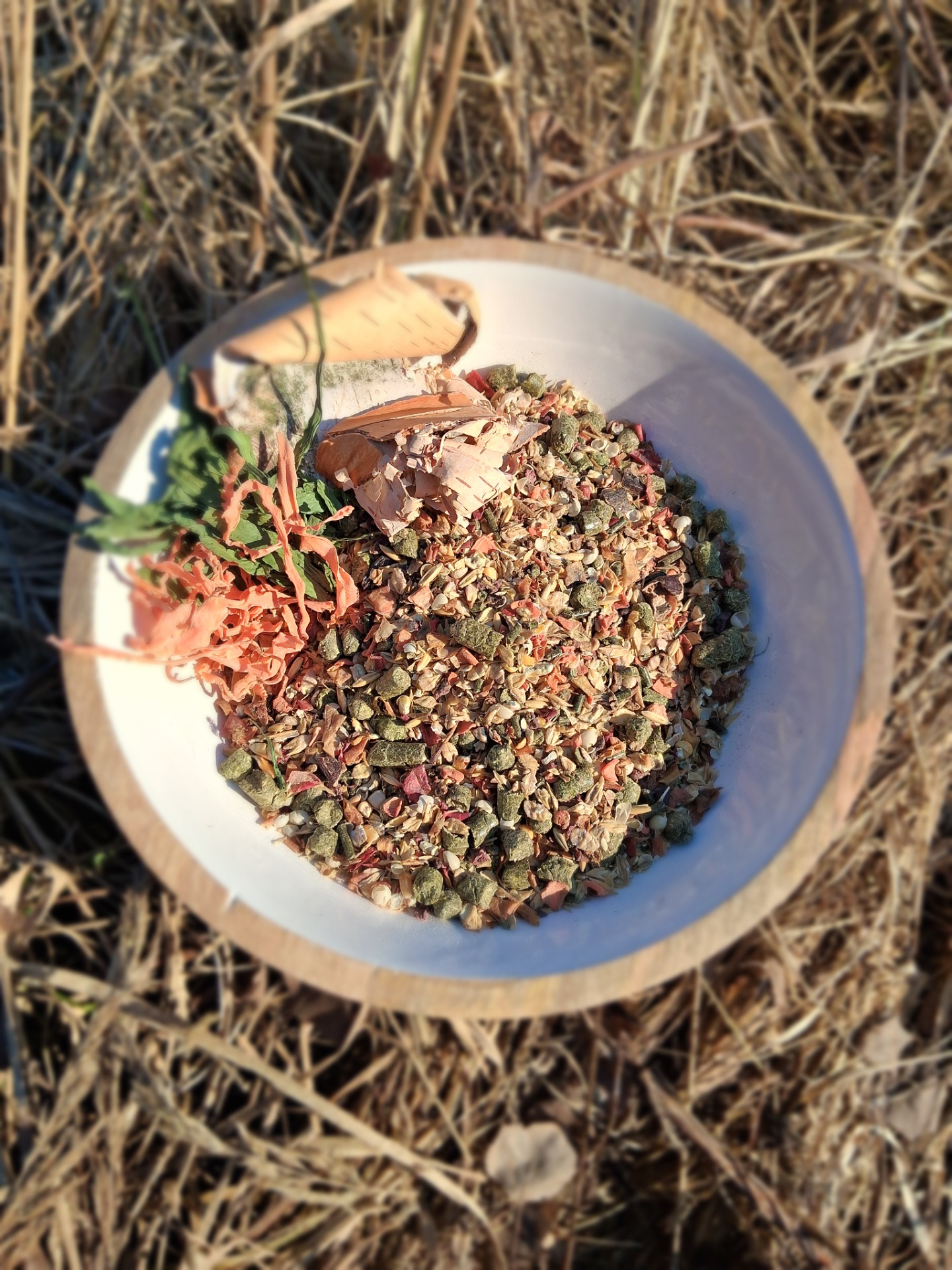 SPECIÁLNÍ DOPLŇKOVÉ KRMIVO PRO HLODAVCE SLOŽENÉ Z SUŠENÝCH PLODINSložení:Vojtěška sušená /LUCERNE/Vločky kukuřičnéVločky hrachovéMrkev sušenáVločky fazolovéČervená řepa - sušená