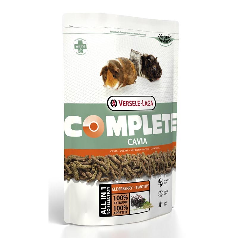 Cavia Complete je 100% extrudované jednosložkové krmivo pro morčata, bohaté na vlákninu rostlinného původu z celých neporušených kousků různých druhů sena. Podporuje přirozenou zubní péči a vyváženou střevní mikroflóru. Obsahuje 1 000 mg/kg stabilního vitaminu C. Obsahuje vlákninu z celých neporušených kousků bojínkového sena. Doplněno o bylinky, plody černého bezu a rozmanité druhy trav. Neobsahuje obiloviny.Analytické složky:Protein 14 %, obsah tuku 3,0 %, hrubá vláknina 20,0 %, hrubý popel 7,0 %, vápník 0,8 %, fosfor 0,6 %.Složení:Vedlejší produkty rostlinného původu (bojínek 7 %, různé druhy trav a bylin), rostlinné bílkovinné extrakty, ovoce (černý bez 4 %), semena (lněné semeno 2 %), minerální látky, fruktooligosacharidy (0,3 %), aksamitník, juka.Doplňkové látky: Nutriční doplňkové látky (obsah v 1 kg): vitamin A 10 000 m.j., vitamin D3 1 200 m.j., vitamin E 80 mg, vitamin C 1000 mg, E1 (železo) 100 mg, E2 (jód) 2 mg, E4 (měď) 10 mg, E5 (mangan) 75 mg, E6 (zinek) 70 mg, E8 (selen) 0,2 mg. Antioxidanty.Krmný návod:V závislosti na plemeni, velikosti a věku morčete doporučujeme podávat denně 35 až 50 g. Krmivo a pitnou vodu denně vyměňujte. Přidávejte také dostatek sena.