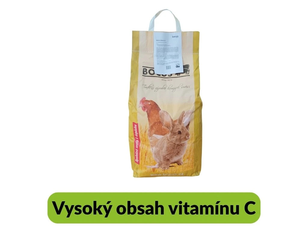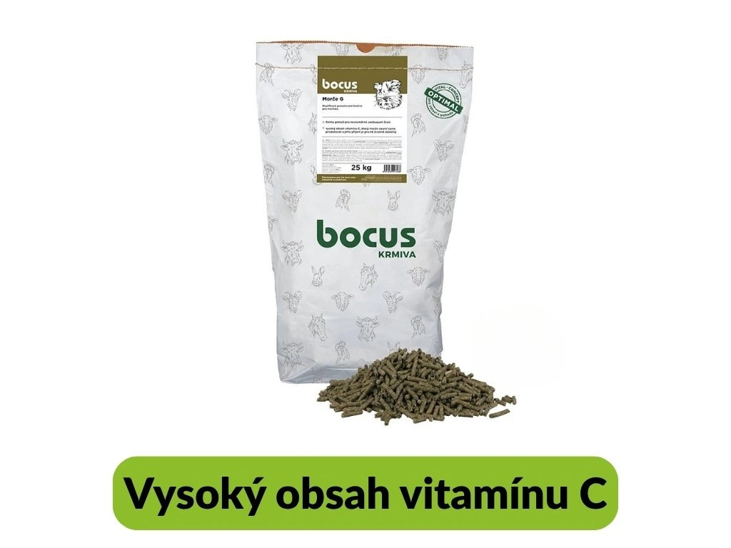 Kompletní krmivo pro morčata - forma müsli simulující přirozený způsob stravy morčat, obsahuje nativní zdroje zeleniny a koření podporující zdraví, VYSOKÝ obsah vitamínu C.Složení: vojtěškové úsušky, ječmen vločka, kukuřice semeno, ječmen jarní, hrách semeno, mrkev sušená - kousky, oves semeno, jablečné výlisky, lněné semeno, červená řepa sušená - kousky, uhličitan vápenatý, petržel nať, kopřiva nať, jitrocel list, svatojánský chleba - kousky, bříza list, koriandr plod, máta peprná list, chlorid sodný.Analytické složky: hrubý protein 10,7 %, hrubá vláknina 12,4 %, hrubé oleje a tuky 3%, hrubý popel 6,2 %Obsah doplňkových látek v 1 kg:  jód (doplněno jodičnanem vápenatým bezvodnýcm) 1,4 mg, měĎ (síranem měďnatým pentahydrátem) 18, 4 mg, mangan (doplněno oxidem manganatým) 69 mg, zinek (doplněno oxidem zinečnatým) 49 mg, selen (selenčitanem sodným) 0,18 mg, Vitamín A 14000 IU, vitamín D3 700 IU, vitamín C 3000 mg.Krmný návod: Krmte adlibitně dle kondice zvířete. Doporuřujeme pro kojící samice, mláďata, staroušky a aktivní morčátka. Zajistěte neustálý přístup k čerstvé vodě.  Minimální trvanlivost: 18. 08. 2026Výrobce: Dibaq a.s., Helvíkovice 90, 564 01 HelvíkoviceIDP: CZ 800335-10