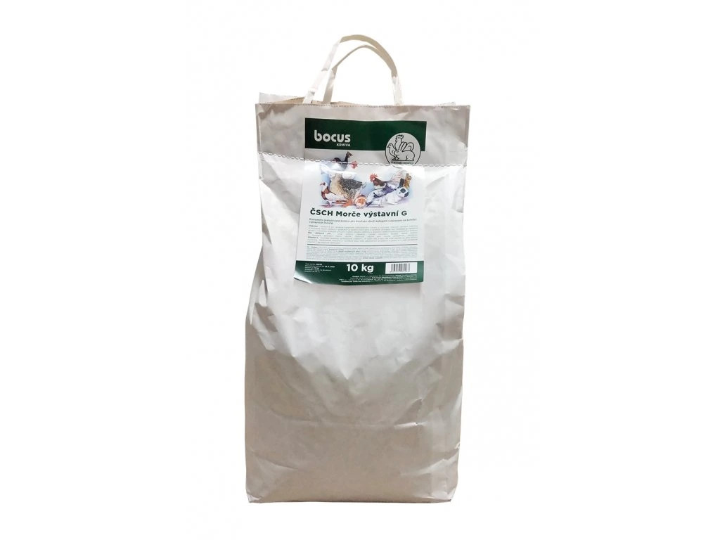 Vláknina - nezbytná pro správné fungování mikrobiálního trávení u morčete. Hlavním zdrojem vlákniny a současně hlavní složkou v granulích je kvalitní luční seno z podhůří Orlických hor. Vojtěška je zařazena pouze v minimální hodnotě a to pro zvýšení obsahu vlákniny a doplnění ideální hodnoty proteinů v krmivu. Bez obilných zrn - zrna obilovin obsahují vysoké množství škrobů, které mohou u morčete způsobit trávicí obtíže. Obiloviny nejsou pro morče přirozenou potravou. Vitamin C - morčata nedokáží syntetizovat vitamin C ve svém těle a jsou tak plně závislá na jeho příjmu z potravy, proto je v naší receptuře vitamín C dostatečně zastoupen.Složení: luční seno, pšeničné otruby, vojtěškové úsušky, sladový květ, slunečnicový extrahovaný šrot, hrách, uhličitan vápenatý, sojový olej, chlorid sodný.Analytické složky: Hrubý protein 16 %, hrubá vláknina 20 %, hrubé oleje a tuky 2,2 %, hrubý popel 6,5 %, vápník 1 %, sodík 0,2 %, fosfor 0,5 %.Obsah doplňkových látek v 1 kg: Stopové prvky:3b101 železo (doplněno síranem železnatým monohydrátem) 166 mg, 3b202 jód (doplněno jodičnanem vápenatým bezvodým) 0,9 mg, 3b405 měď (doplněno síranem měďnatým pentahydrátem) 13 mg, 3b502 mangan (doplněno oxidem manganatým) 93 mg, 3b603 zinek (doplněno oxidem zinečnatým) 72 mg, 3b801 selen (doplněno seleničitanem sodným) 0,24 mg. Vitamíny, provitamíny a chemicky definované látky s obdobnými účinky:3a672a Vitamín A 13000IU, 3a671 Vitamín D3 1100 IU, Vitamín C 1750 mg.Krmný návod a použití: krmivo je určeno pro výstavní morčata. Doporučené dávkování 50 g / ks / den s ad libitní dávkou sena a vody.