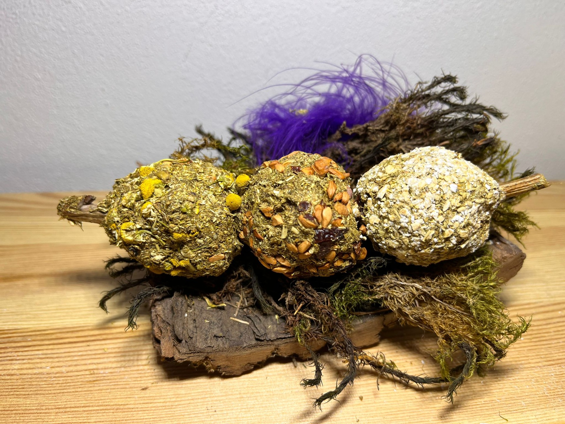 Malinová větvička s kuličkami různých chutí.Ručně vyráběný pamlsek pro hlodavce. Neobsahuje žádné konzervanty, složení je bez obilné.Složení: bezobilné granule pro morčata, seno, lněné semínko, malinová větvička, heřmánek, šípek, ovesné vločky.Váha: 35 g.