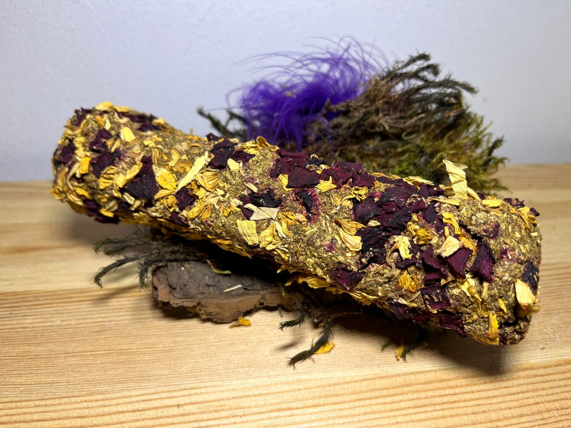 Ručně vyráběný pamlsek pro hlodavce. Neobsahuje žádné konzervanty, složení je bez obilné.Složení: seno, sušená zelenina.Váha: 15 g.