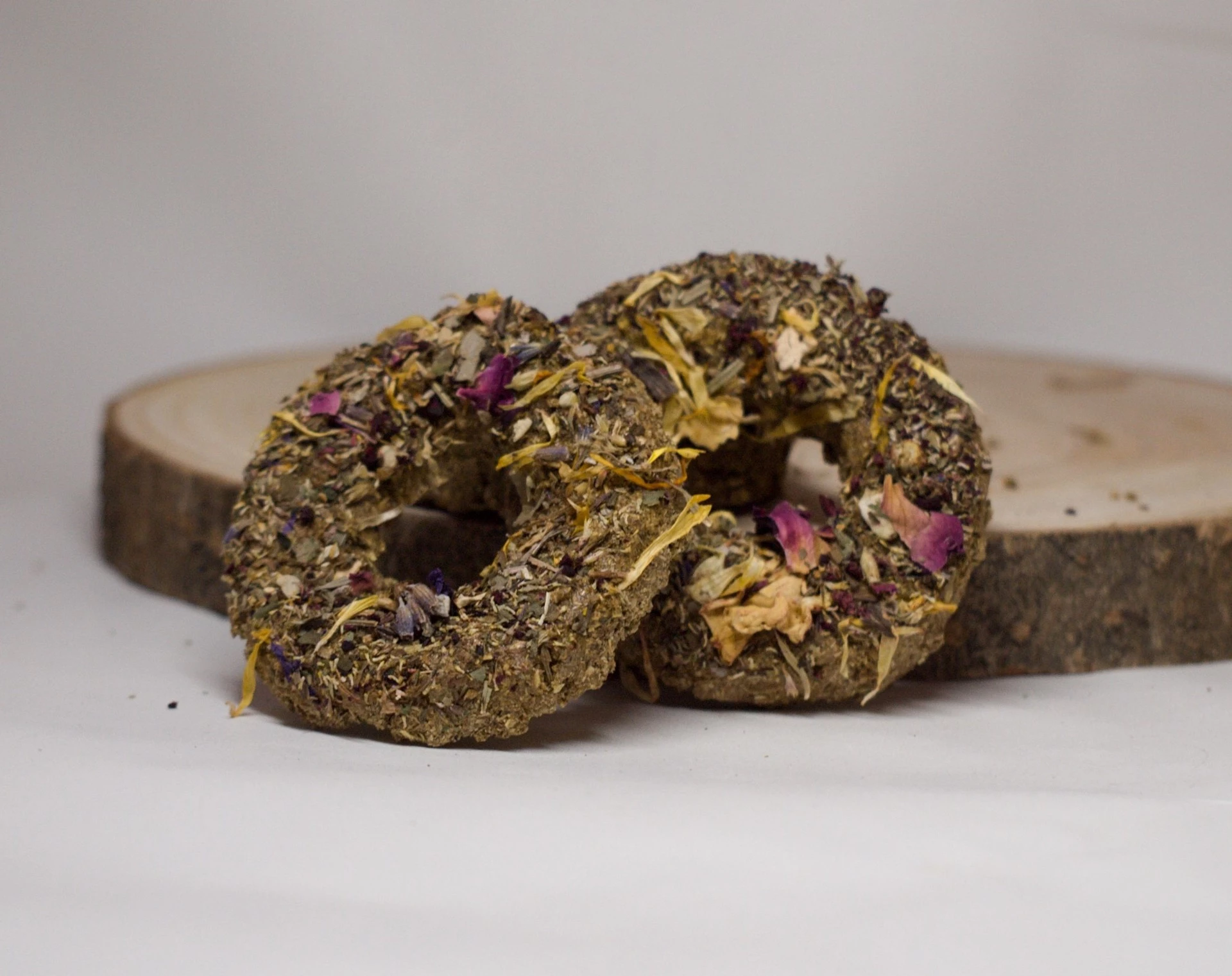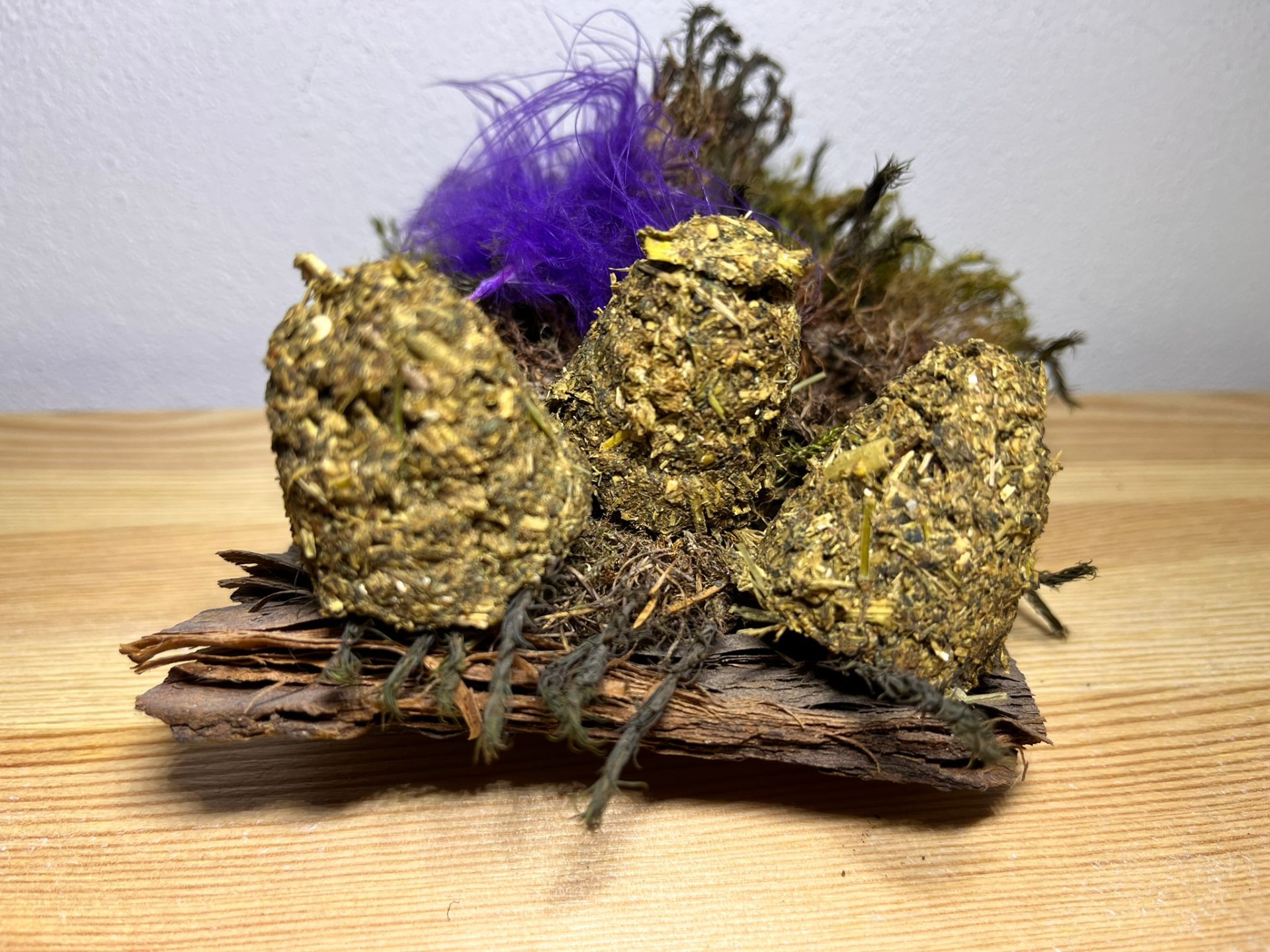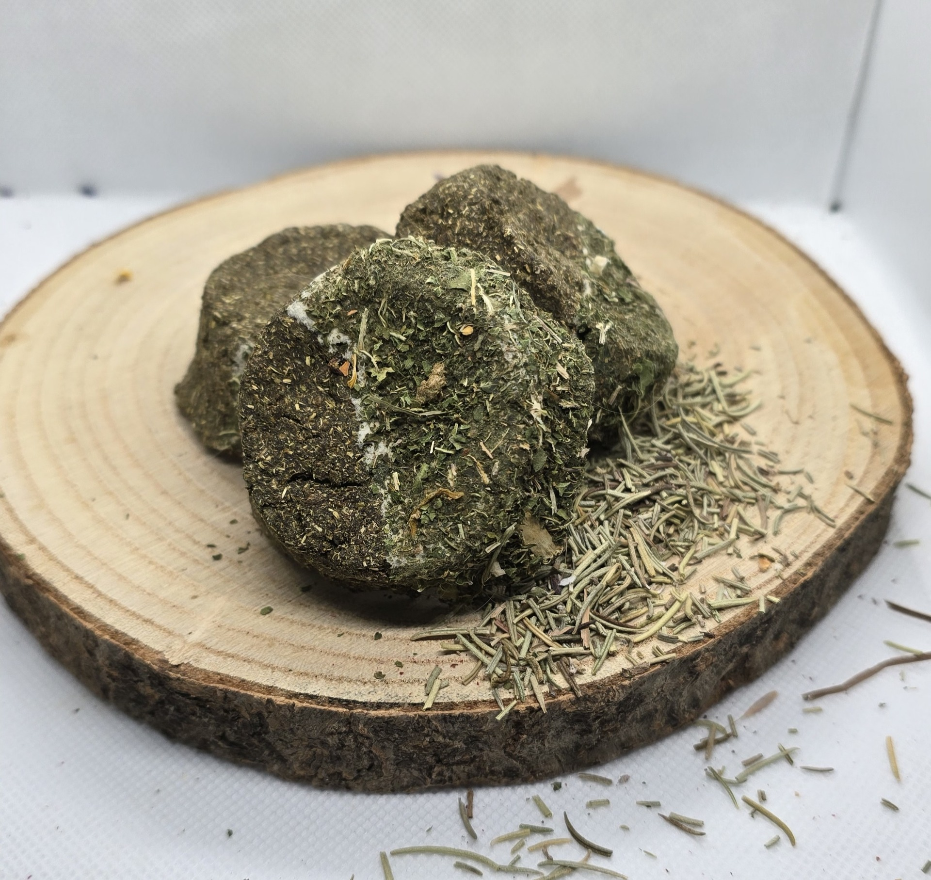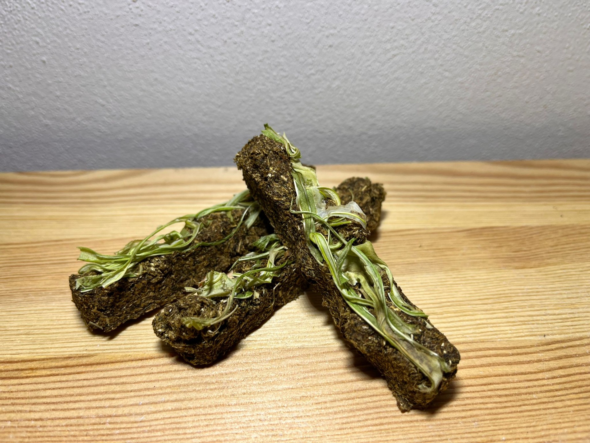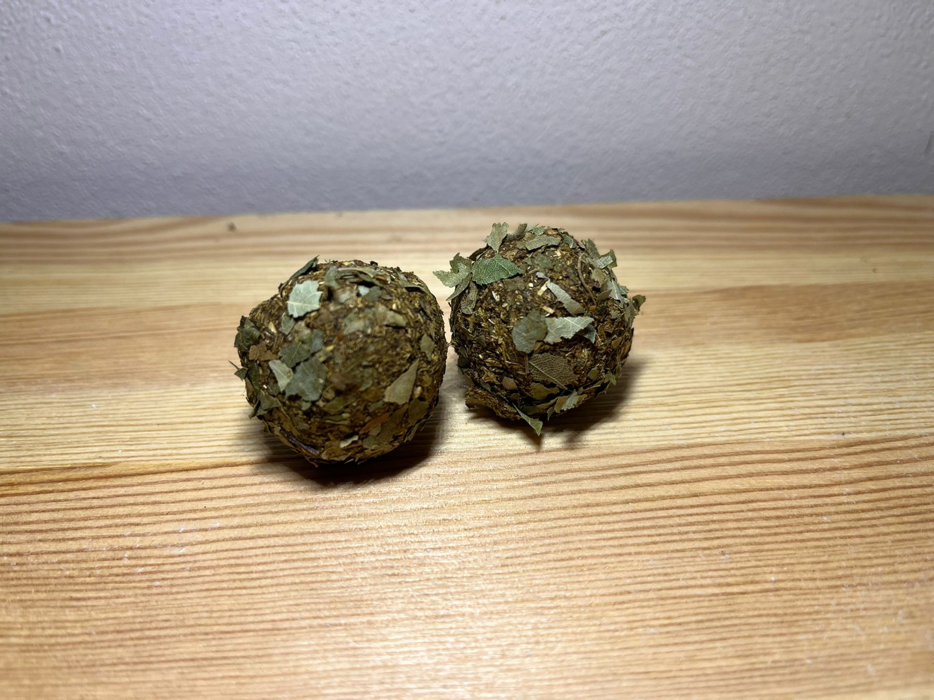 Ručně vyráběné pamlsek pro hlodavce. Neobsahuje žádné konzervanty, složení je bez obilné. Složení: bezobilné granule pro morčata, seno, lněné semínko, kopřiva, vojtěškové seno. Váha dvou kusů cca 12 gramů.