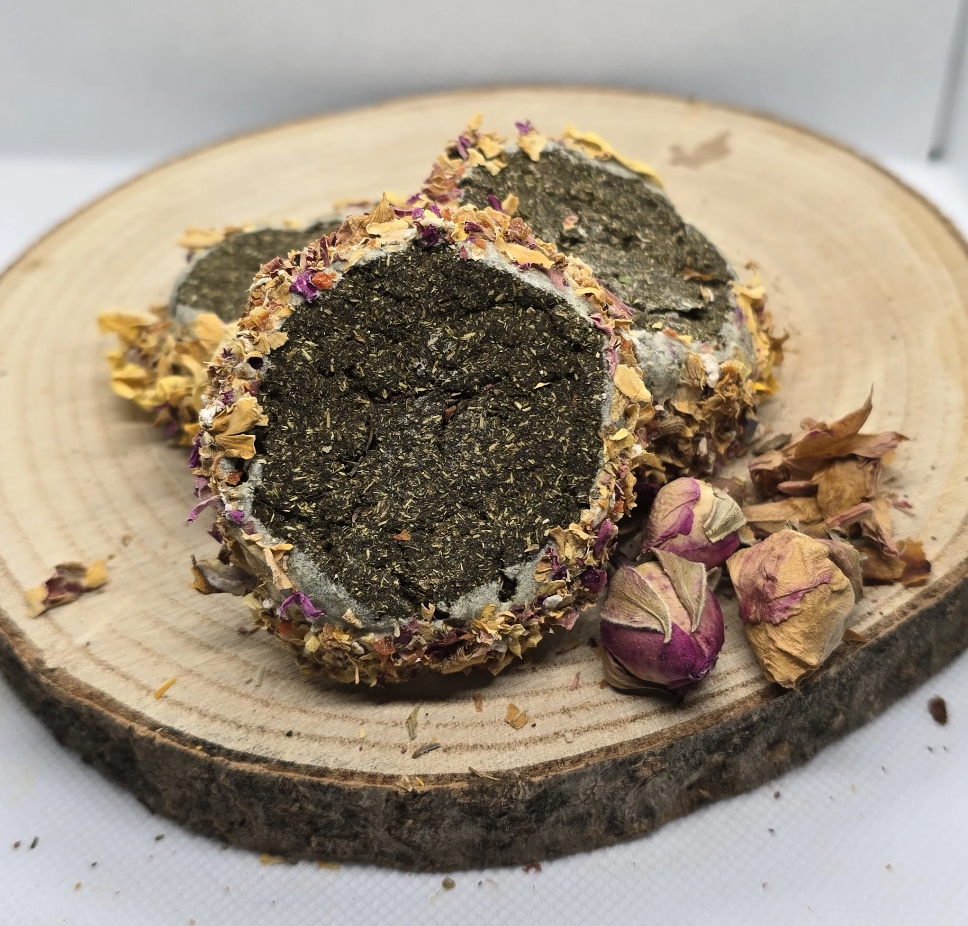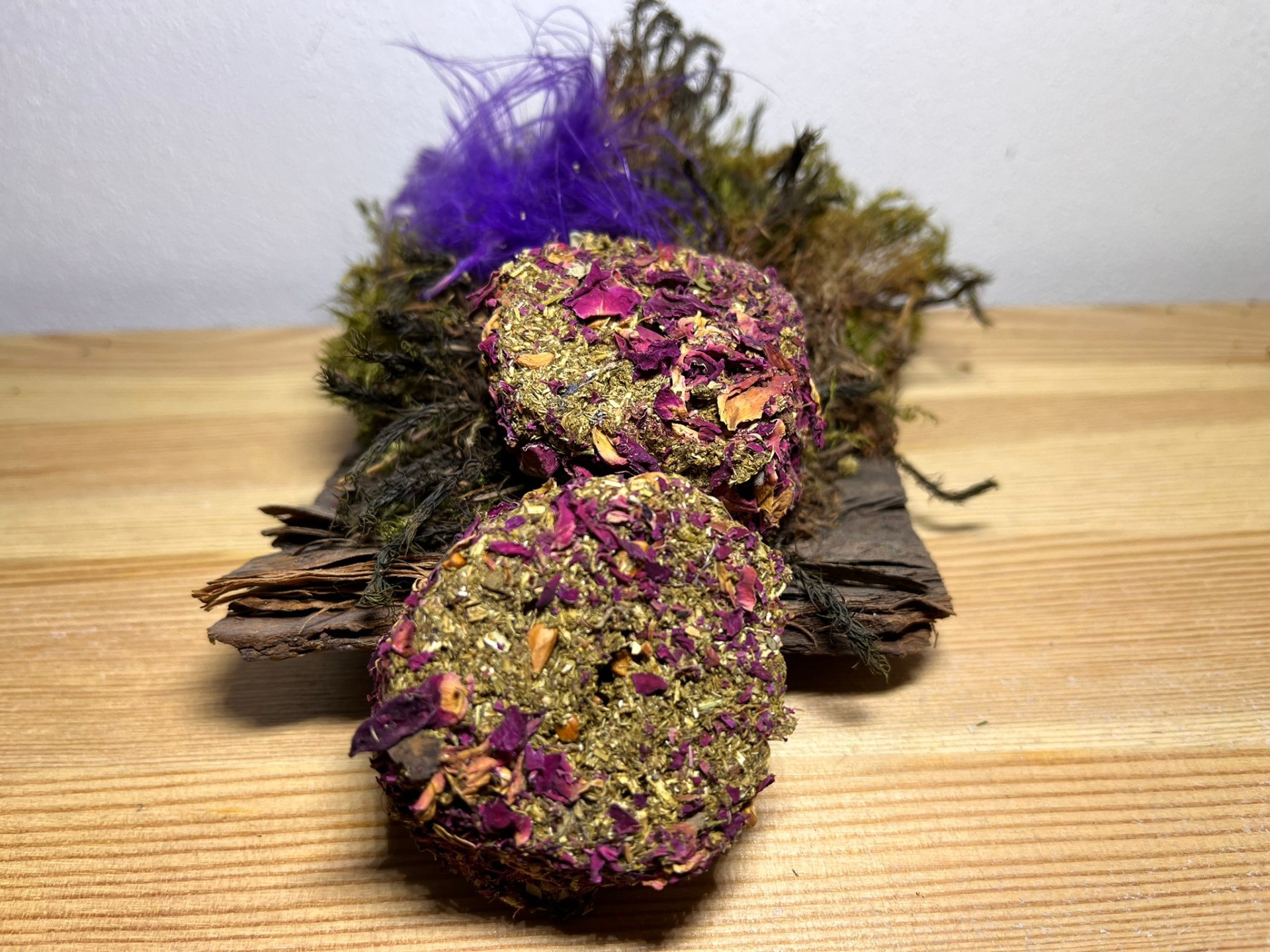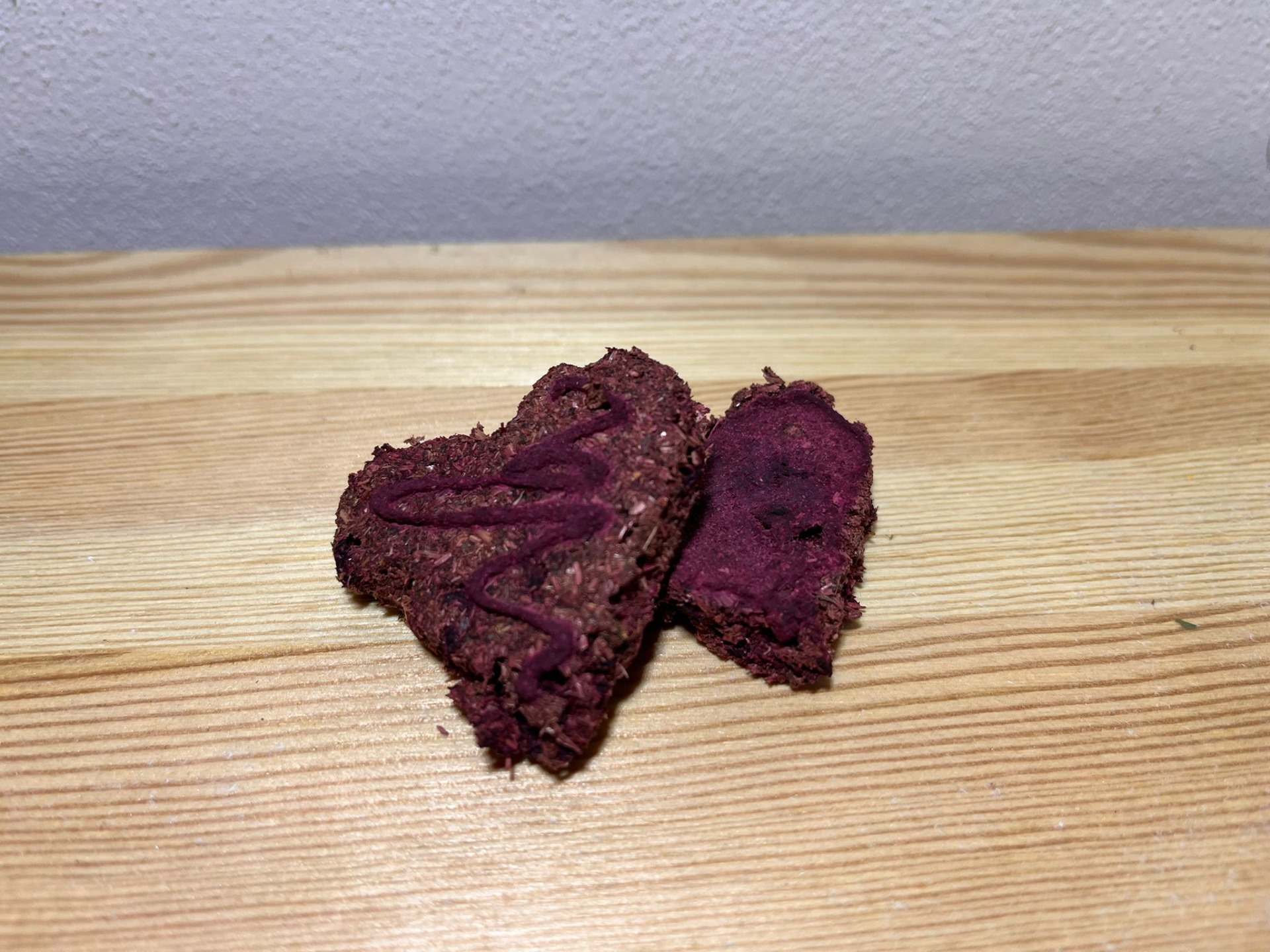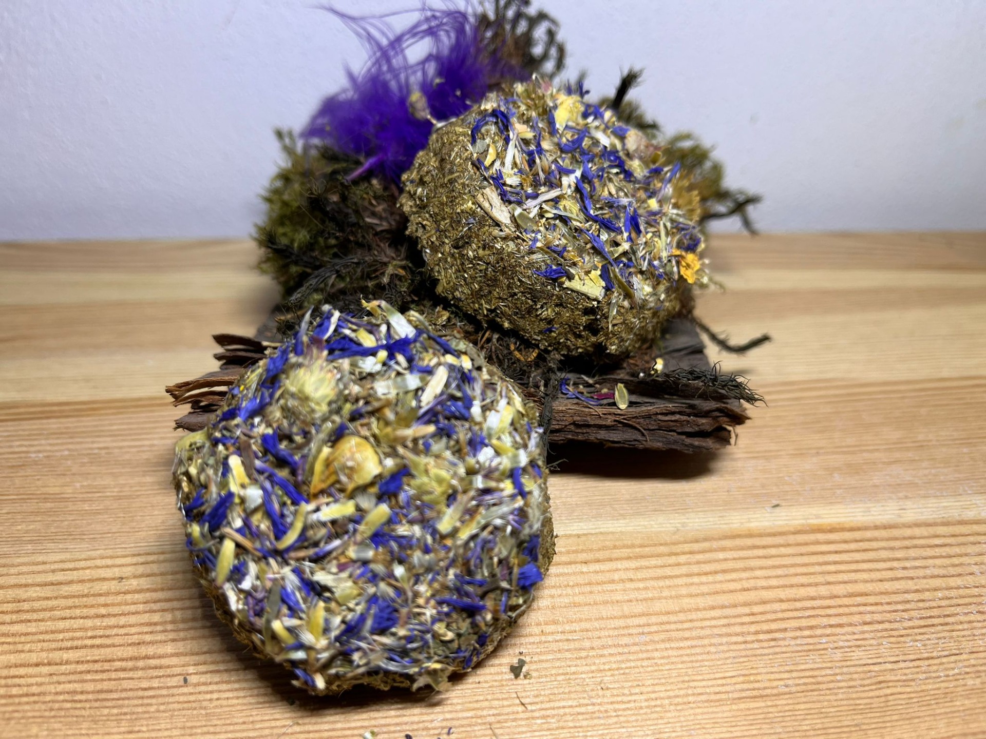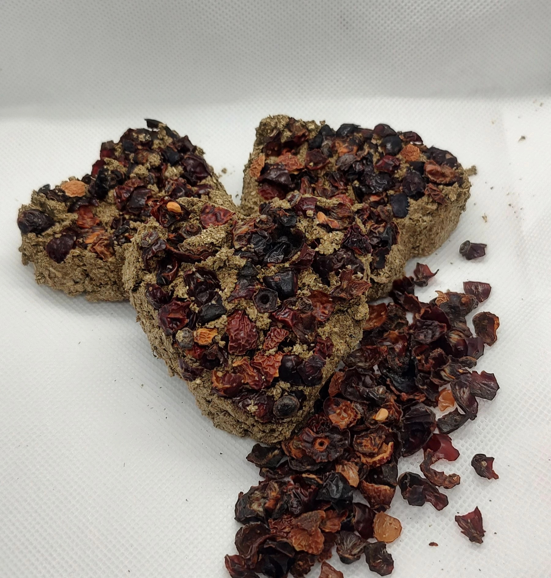 Ručně vyráběné pamlsek pro hlodavce. Neobsahuje žádné konzervanty, složení je bez obilné. Složení: bezobilné granule pro morčata, seno, lněné semínko, kopřiva, vojtěškové seno. Váha dvou kusů cca 12 gramů.