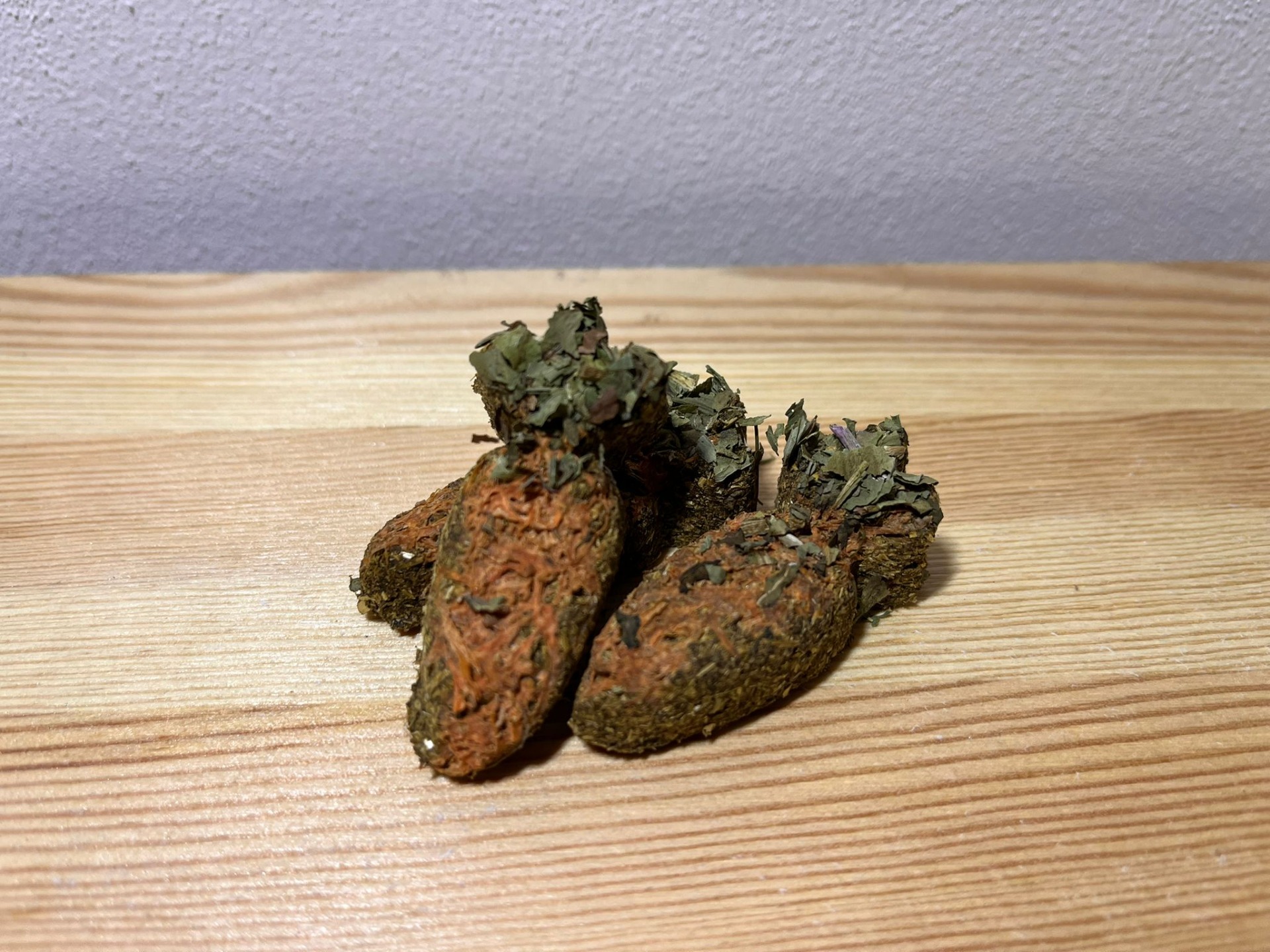 Ručně vyráběný pamlsky pro hlodavce. Neobsahuje žádné konzervanty, složení je bez obilné. Složení: bezobilné granule pro morčata, seno, lněné semínko, zelenina.Váha: 9-10 gramů.