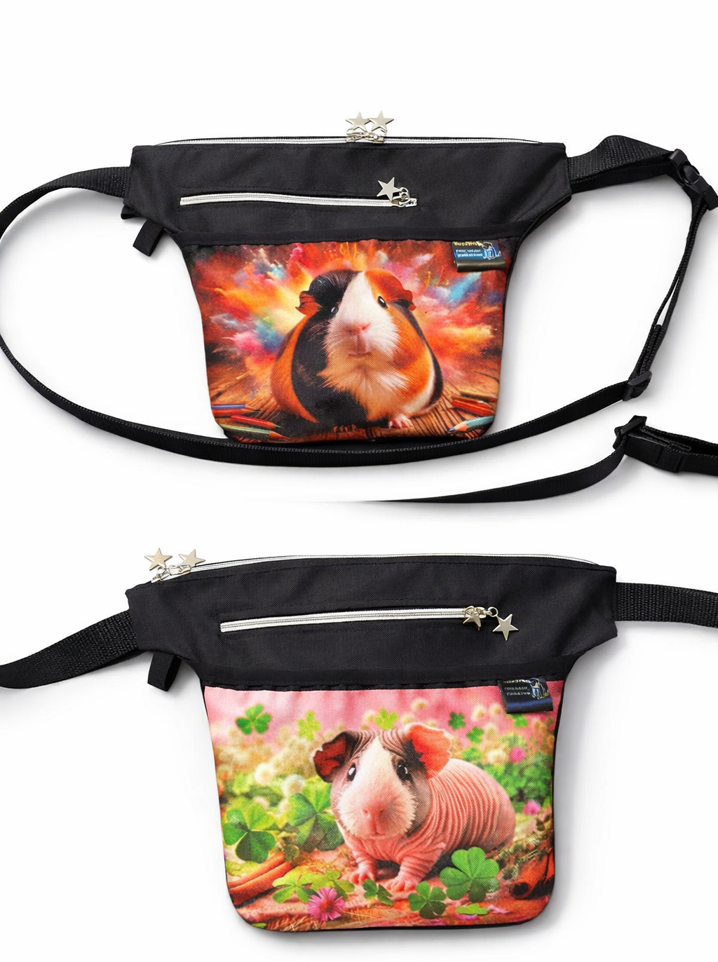 Český výrobek, handmade. Nahoře v nejširší části: 31 cm, výška: 22 cm. Nahoře zip (celá kapsa) , další kapsa je široká 17 cm. S poutkem a posunovacím popruhem. Do poznámky napište, jaké morčátko si přejete.
