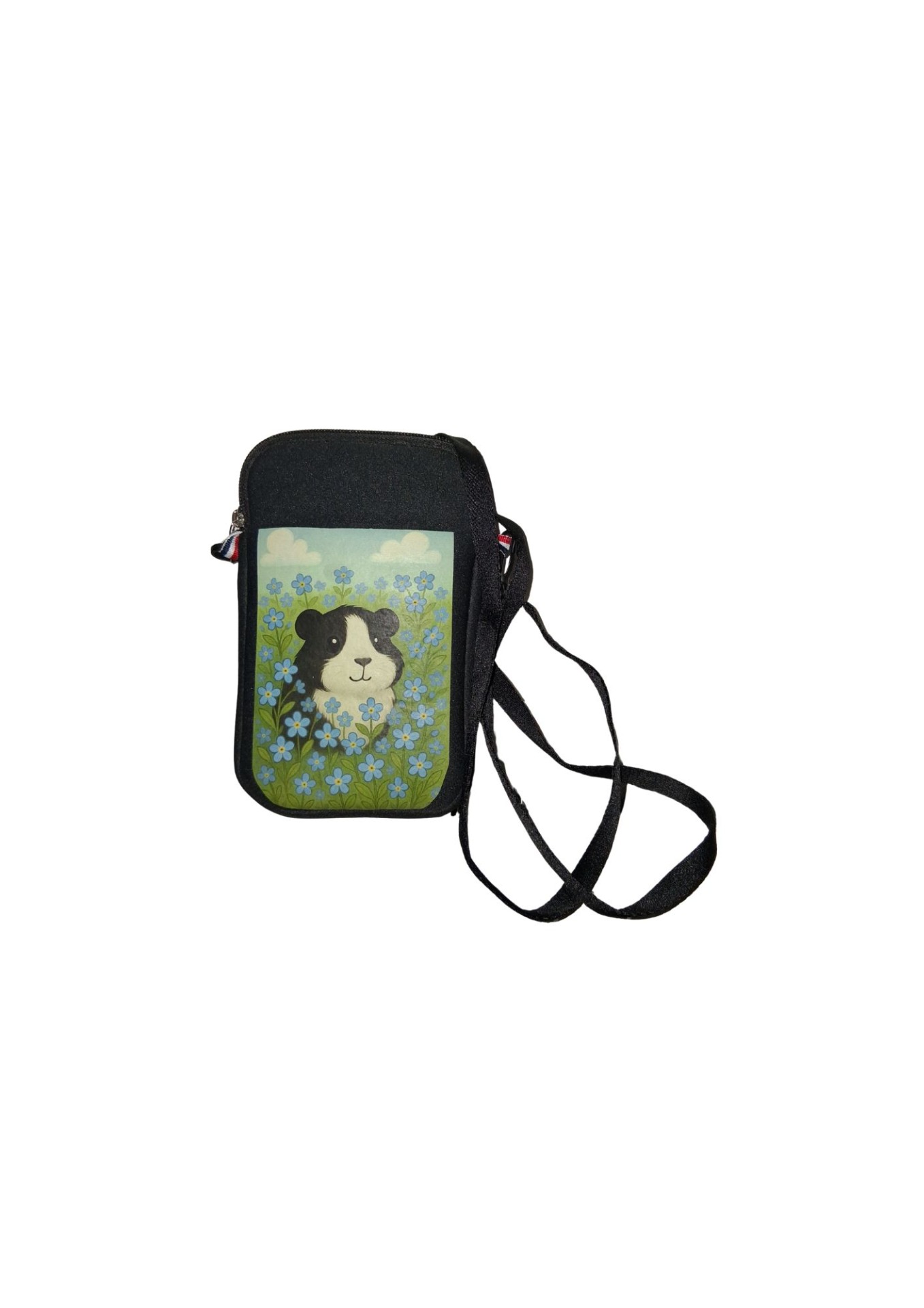 Neoprenová kapsička na zip. Velikost na peněženku a mobil. Na šňůrky přes rameno.
