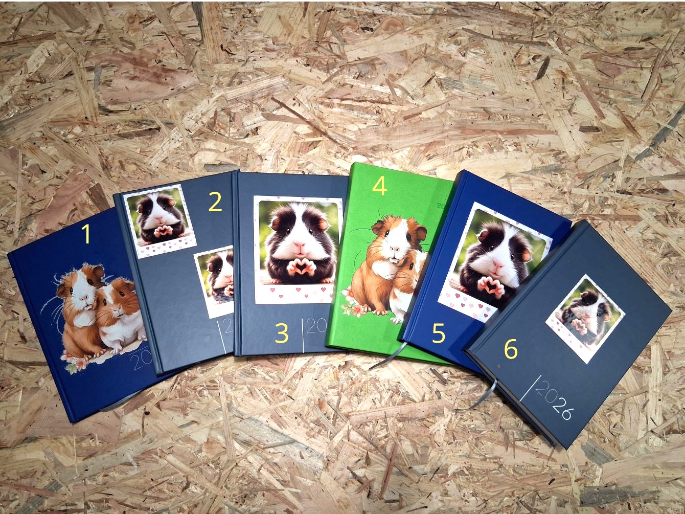 Maličký kapesní diářek s obrázkem morčat.